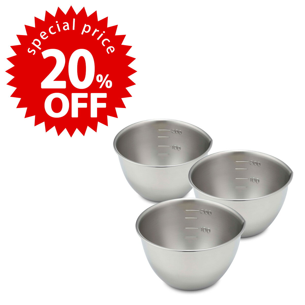 【 スーパーセール 期間限定 20%OFF 】ママクック プチボール 3個セット 日本製ステンレスボウル キッチンボウル ミニボウル ステンレスボール セット コンパクト 目盛付き 下ごしらえボウル 下ごしらえボール 小分け18-8 注ぎ口付き 調理ボウル 卵 燕三条 下村企販