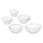 アイリスオーヤマ 耐熱ガラスボウル 5点セット 350度まで加熱可能 フタ付 ホワイト TGB-5S