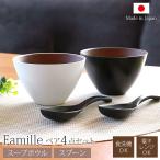 10%OFF スープボウル お椀 汁椀 300ml ペア 4点セット スプーン付き れんげ ファミーユ 抗菌 食洗機 電子レンジ対応 日本製 ギフト