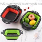 折りたたみボウル 水切り かご シリコン ざる 野菜 果物 バスケット 四角 アウトドアにも便利 大小2つ入り