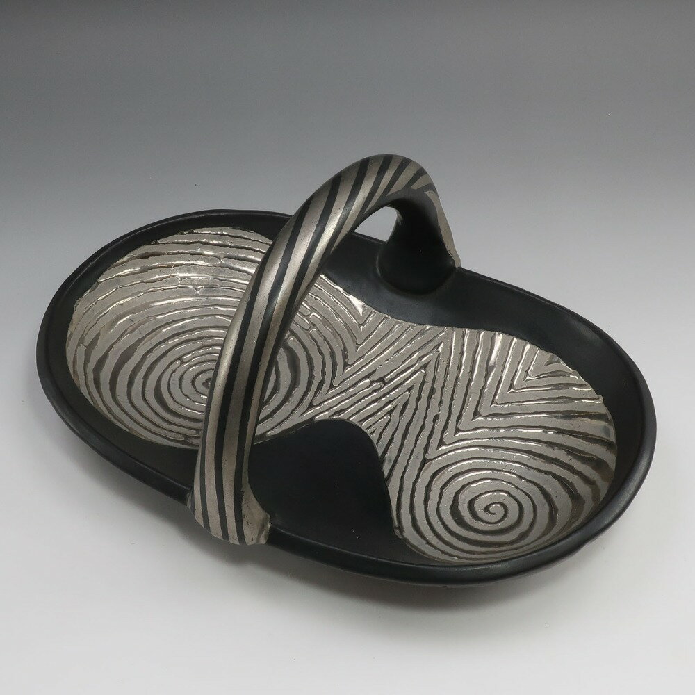 【スーパーセール10%OFF対象】柳原睦夫 作 【 ギンオリベ 手付鉢 】 茶道具 陶磁器 Made by Yanagihara Mutsuo [Ginoribe bowl with handle] _【中古】Aランク