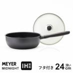 マイヤー MEYER ミッドナイト MIDNIGHT フライパンセット 深い24cm ガラス蓋付 MN-GF24+MNH-CP24 蓋 IH対応 焦げ付かないステンレス すべての熱源に対応