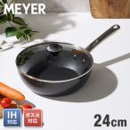 MEYER マイヤー フライパン 24cm深型 ガラス蓋セット ガス火 IH対応 ブラック ステンレス フッ素 代引不可 レビュー報告でマイヤー鍋敷き