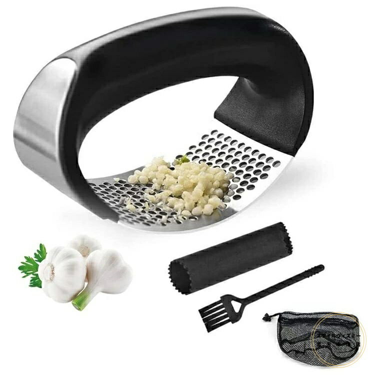6%OFFクーポン】ステンレスガーリックプレス にんにく潰し器 みじん切り器 生姜破砕機 みじん切り にんにくつぶし ニンニク潰し クラッシャー にんにく 潰し ニンニクみじん切り ガーリックマッシャー ステンレス 人間工学 省力化 ブラシとガーリック皮むき器 対応収納袋付き