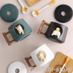 マグカップ 犬 北欧 大きい 保温 かわいい おしゃれ 陶器 フタ付き 蓋付き マドラー付き イヌ 柴犬 コップ おもしろ ギフト プレゼント 誕生日 記念日 420ml