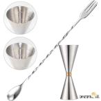 ジガーカップ 目盛り付き メジャーカップ 30ml/45ml バースプーン マドラー カクテル メジャーカップ 計量カップ ジガー カクテル シェーカーセット バーテンダ