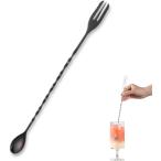 バースプーン マドラー ステンレス製 ロング スパイラル 業務用 プロ仕様 カクテル バーテンダー バーツール(ブラック, 32cm)