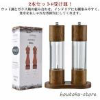 コショウ 手動 透明 スパイスボトル 木製ペッパーミル ソルトミル ブラックペッパー 黒胡椒 ミル 【2本組】胡椒ミル 調味料挽き 粗さ調節 岩塩 山