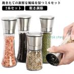 手動ミル ペッパー 2個セット ミル ソルトミル 調味料挽き ミル スパイス 香辛料 粗さ調節 岩塩 黒胡椒 コショウ 擦り 手動 グラインダー