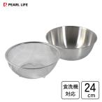 深型ボウル & メッシュボウル 24cm 2点セット| ボウル ザル セット 2点 ステンレス ボール ステンレスボウル ざる 収納 米とぎ 米研ぎ 便利 おしゃれ kai セット商品 一人暮らし お菓子作り 製菓道具