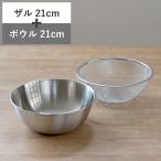 ザル&ボウル 21cm メモリ付き ステンレス製 ベーシスライン ( ステンレスザル 丸型 メッシュ 水切り 湯切り ボール ステンレス ステンレスボウル )