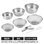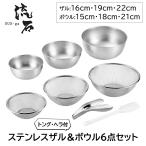 ざる 16cm 19cm 22cm ボウル 15cm 18cm 21cm 6点セット ヘラ トング付き ステンレス製 丈夫 水切り ストロングメッシュ 調理器具 燕三条 日本製 爆買