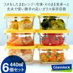 ラップいらず 割れにくい 耐熱ガラス容器 6点 セット フタごとレンチン グラスロック レンジクック イエロー 440ml 食洗機 電子レンジ 送料無料
