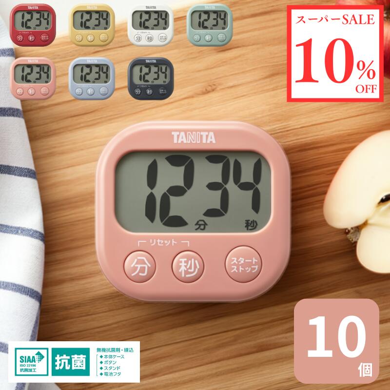\スーパーSALE 18%OFF/【同色10個セット】タニタ 抗菌でか見えタイマー TD-429 SIAA認証 抗菌加工 キッチンタイマー リピート機能 カウントダウン 選べる7色 丈夫 軽量 シンプル設計 表記が大きい 見やすい おしゃれ かわいい