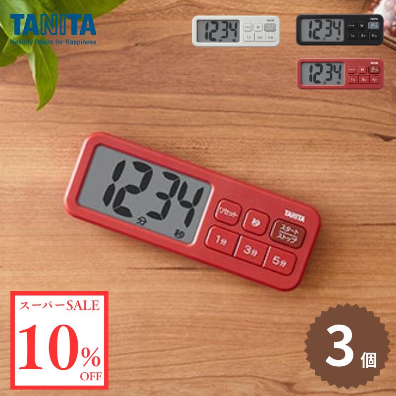 \スーパーSALE 10%OFF/【同色3個セット】タニタ タイマー TD-431 抗菌でか見えタイマー キッチンタイマー SIAA認証 抗菌加工 大型表示 時間設定 1分 3分 5分 選べる3色 ストラップ穴 マグネット付き