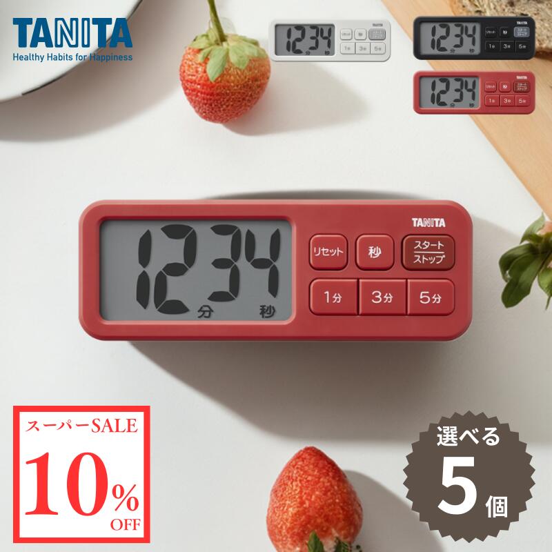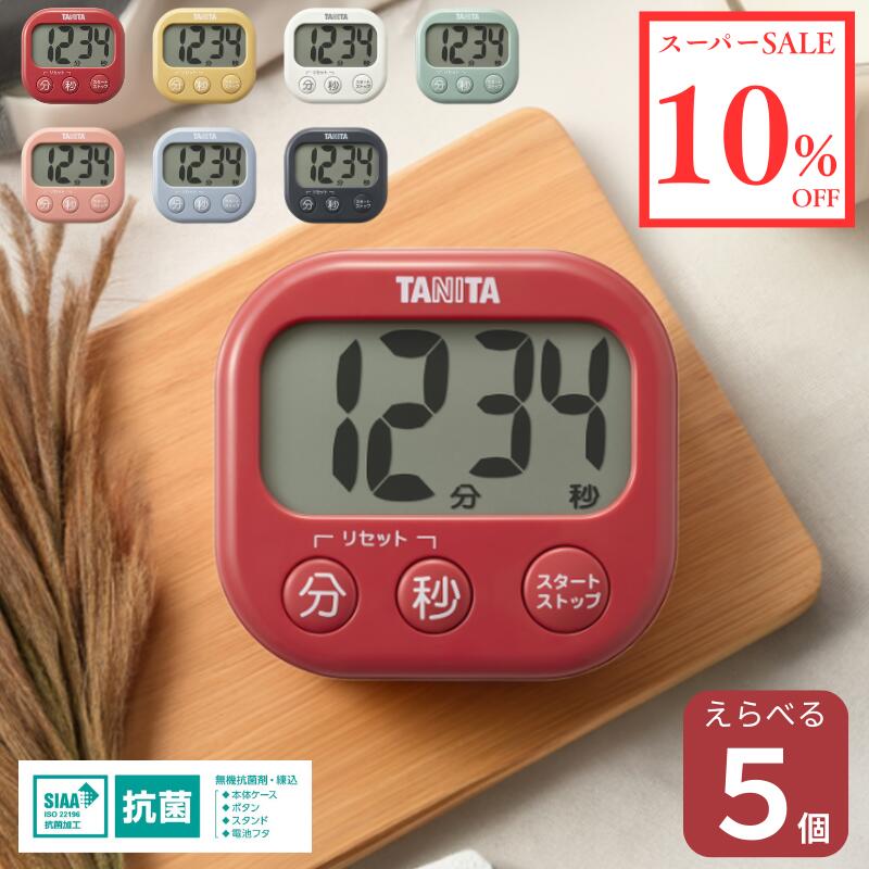 \スーパーSALE 10%OFF/【選べるカラー5個】タニタ タイマー TD-431 抗菌でか見えタイマー キッチンタイマー SIAA認証 抗菌加工 大型表示 時間設定 1分 3分 5分 選べる3色 ストラップ穴 マグネット付き