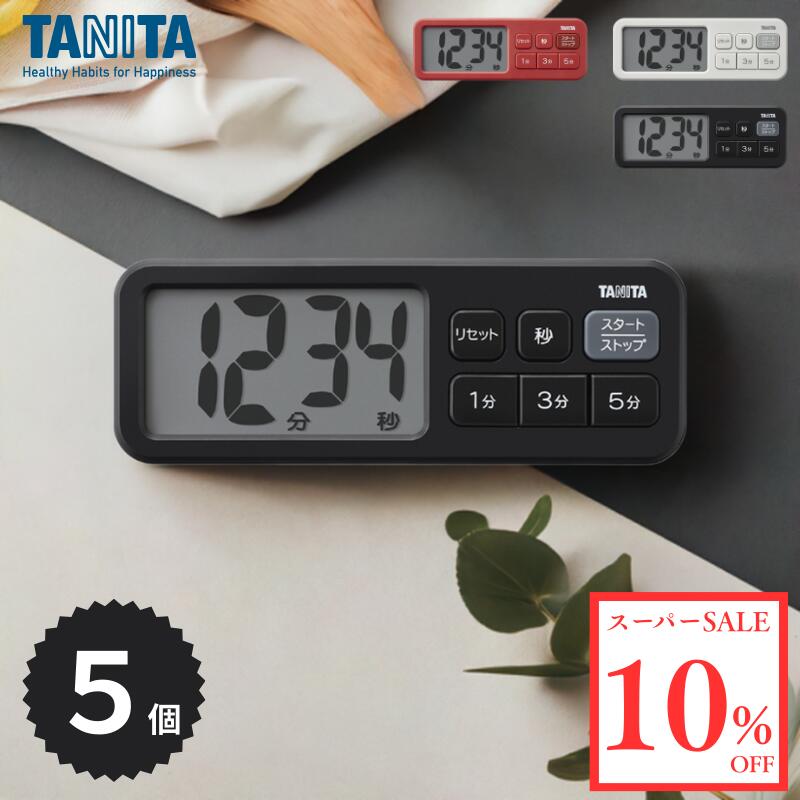 \スーパーSALE 10%OFF/【同色5個セット】タニタ タイマー TD-431 抗菌でか見えタイマー キッチンタイマー SIAA認証 抗菌加工 大型表示 時間設定 1分 3分 5分 選べる3色 ストラップ穴 マグネット付き