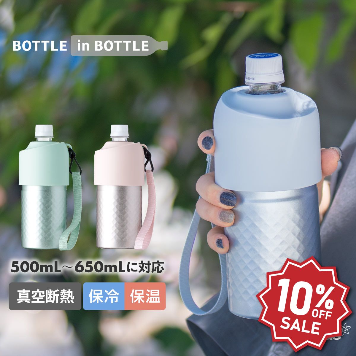 【楽天スーパーSALE 10%OFF】アトラス ペットボトルホルダー ボトルインボトル 500ml 650ml 保冷 保温 真空断熱 ストラップ付き ステンレス 水筒 ペットボトルケース ペットボトルカバー ペットボトルクーラー 熱中症対策 水分補給 ABIB-AN
