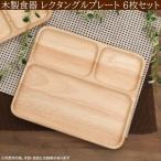 【得まとめ買い】 木皿 3仕切り ランチプレート 6枚セット レクタングルトレー ワンプレート 木製皿 平皿 プレート トレー 皿 木製食器 天然木 送料無料