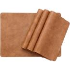 ランチョンマット レザー 高級質感 4枚セット 撥水 北欧 ミニマルデザイン (ライトブラウン, 43cmx30cm)