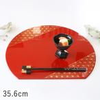 折敷 ランチョンマット テーブルマット 半月フラットプレイスマット S 35.6cm 麻の葉 (レッド地×金線) 漆器 お正月 お祝い 和食器