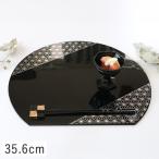 折敷 ランチョンマット テーブルマット 半月フラットプレイスマット S 35.6cm 麻の葉 (ブラック地×銀線) 漆器 お正月 お祝い 和食器
