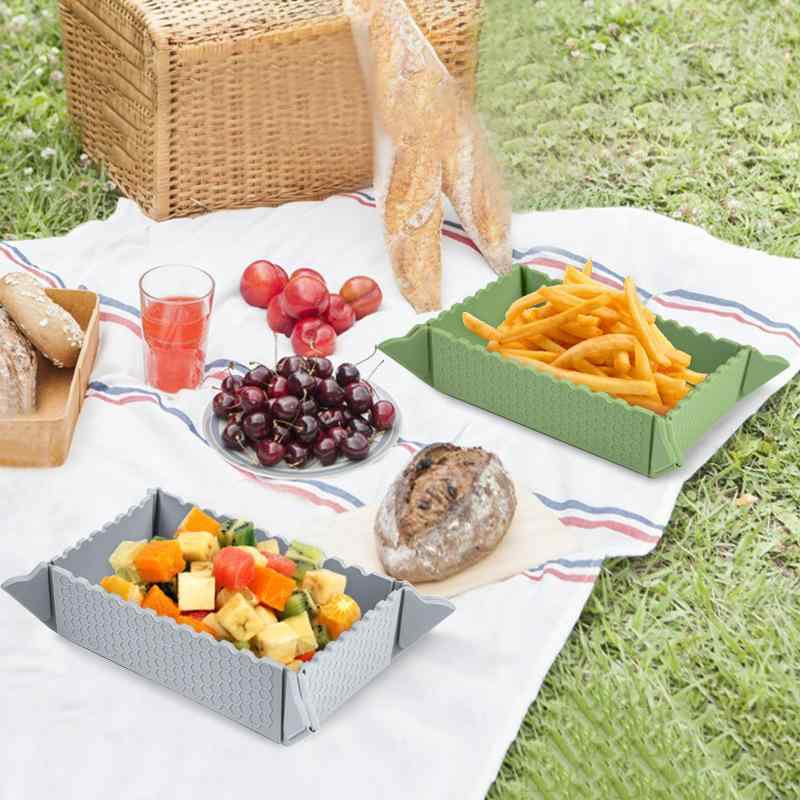 食器 ランチョンマット シリコン製 折り畳み式 携帯便利 多機能 グレー 緑 青 断熱 撥水 アウトドア キャンプ(x100)