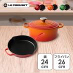 【並行輸入品】 なべ+フライパンセット ル クルーゼ 両手鍋 グリルパン ル・クルーゼ 鍋24cm/フライパンセット ルクルーゼ