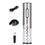 電動ワインオープナー、自動式ワインオープナー、アルミ合金、コードレスバッテリ駆動、ホイルカッター付き、メタリックペイント、シルバー