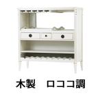 ロココ調 キッチンボード ホワイト 約W100×約D40×約H100(cm) トレー ワイングラスホルダー ワインボトルラック サイドボード 食器棚 鏡張り ロココ