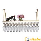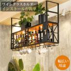 【並行輸入品】 HEONITURE 素朴なワインラック 壁取り付け ガラスホルダー付き 調節可能な吊り下げバー ワイングラスラック 天井 47.2インチ ボトルホルダー