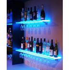LEDライト付き酒ボトルディスプレイシェルフ - 2ステップ、24インチ、リモート&アプリコントロール、ワインホルダースロット付きアクリル、多機能ワインラック夏休スペシャル