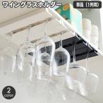 ワイングラスホルダー 差し込み式 吊り下げ 2列 穴あけ不要 ネジ止め不要 戸棚下 簡単収納 グラス掛け グラスハンガー グラスラック キッチン 台所
