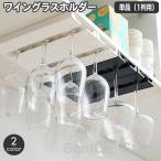 ワイングラスホルダー ワイングラスハンガー 吊り下げ 吊るす 穴あけ不要 ネジ留め不要 工具不要 1列 戸棚下 キッチン 厨房 ラック 収納