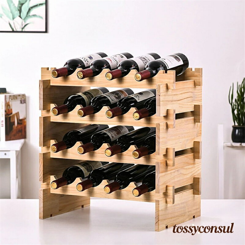 「スーパーSALE10%OFF」 新生活 ボトル インテリア ディスプレイ 木製 収納 ケース スタンド シャンパン ワイン ワインラック 4段 積み重ね式 ホルダー ウッド