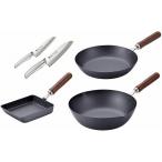 日本製 燕三条 フライパン26cm&いため鍋28cm&玉子焼14×18cm&三徳包丁・ペティ2本セット 代引不可