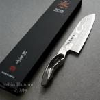 包丁 三徳 粉末ステンレスハイス スーパーゴールド2 槌目 鍛造 カトウ打刃物製作所 義実作 樫焼き 漆柄 MINAMO 越前打刃物 日本製