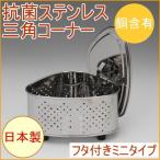 抗菌ステンレス ミニ三角コーナー 蓋付き CK-121 銅イオン抗菌 日本製 キッチン おしゃれ フタつき