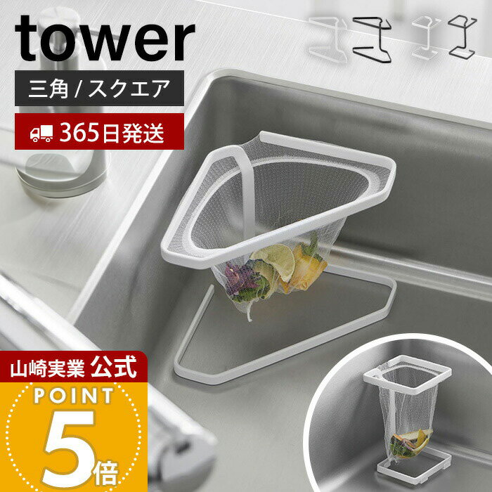 山崎実業 公式 タワー フコーナーに置ける水切りネットホルダー スクエア tower 生ごみ ゴミ箱 置き型 三角コーナー エコホルダー 10205
