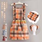 エプロン 袖カバー 三角巾帽子 3点セット レディース チェック柄 保育士 業務用 家事 料理教室 キッチン カフェ 台所用品 作業 H型 おしゃれ