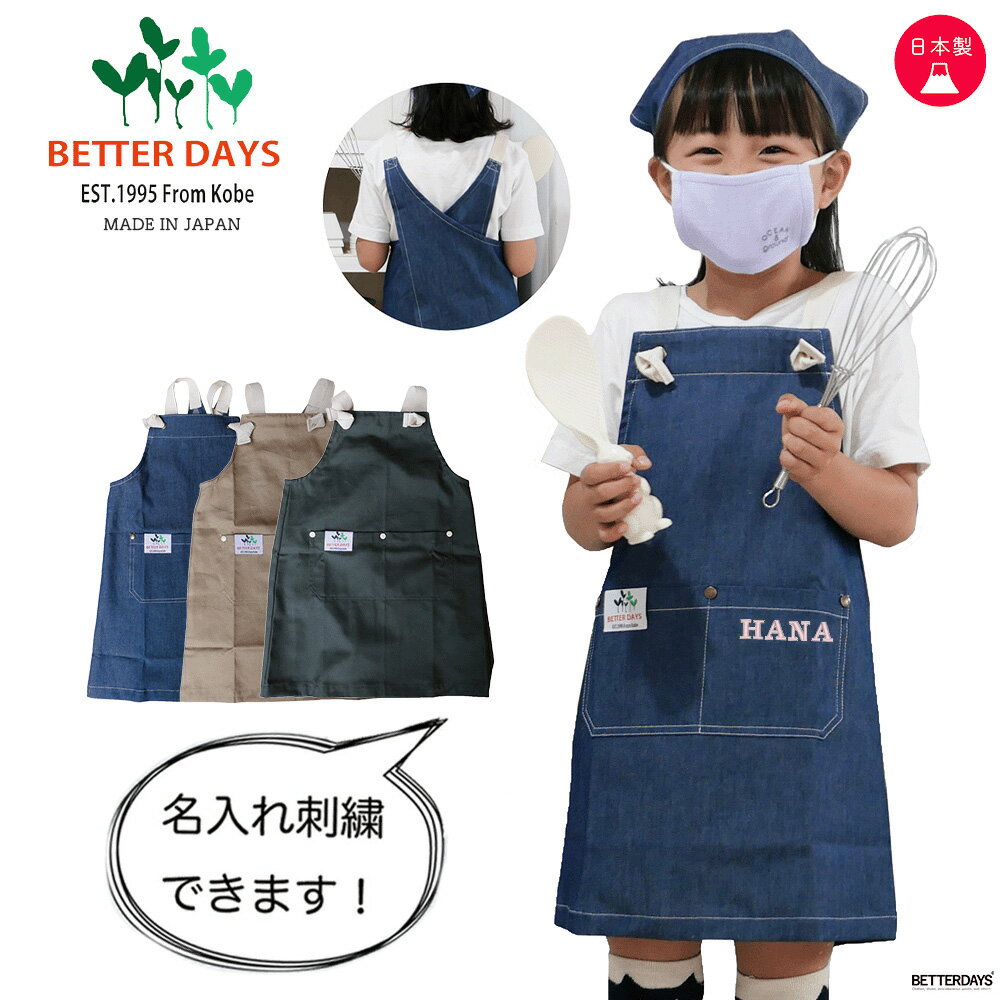 【一部SALE/10%OFF】キッズ エプロン おしゃれ 三角巾セット キッズ 男の子 女の子 男女兼用 日本製 デニム コットン ベターデイズ BETTER DAYS 100-170cm