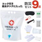 コック付き給水タンクに入った防災9点セット24セット 粗品 プチギフト 防災 震災 災害 非常用 備蓄 キャンプ 車内 グッズ 避難所 水 タンク