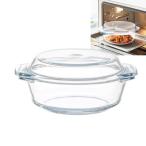 耐熱ボウル 蓋付き ガラス製 透明 丸型 耐熱ガラス グラタン皿 深型 大容量 ガラスボウル 食器 割れない 軽量 一人用 キャセロール 両手鍋 ふた付き 大きめ 家庭