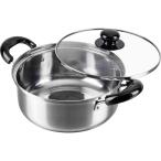 送料無料- 卓上鍋 24cm ステンレス 両手鍋 IH対応 3〜5人用 大きめ 万能サイズ 3.5L 強化ガラス蓋付き 軽量 丈夫 サビにくい 鍋物用 調理器具 80S◇ たらふく鍋