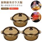 3個セット 耐熱 ガラス ボウル 取っ手付き 両手鍋 蓋付き 1000ml 14cm ガラス鍋 耐熱ガラス 鍋 なべ 卓上鍋 深型 グレー 北欧 おし