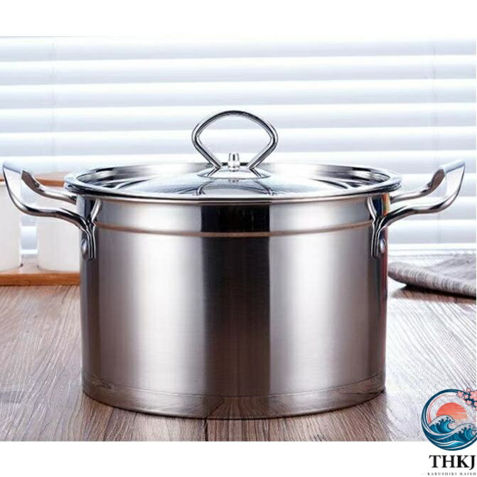 【全品2点で5%OFF】両手鍋 パスタ鍋 半寸胴 深型 ストックポット・ステンレススープポット ガラス鍋蓋付シルバー IH対応 クック ポット オール熱源対応