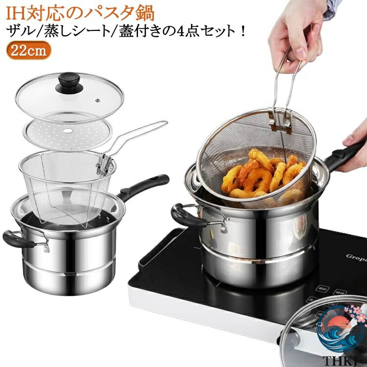 【6%OFFクーポン配布中!】パスタ鍋 22cm 3点セット 4点セット IH対応 ザル付 ガス火 直火対応 パスタポット そうめん鍋 万能鍋 パスタ調理鍋 天ぷら鍋 ガラス蓋 両手鍋 深型 片手鍋 湯切り ザル付き ステンレス鍋 煮る 揚げる 沸かす キッチン用品 一人暮らし 送料無料