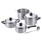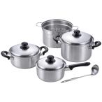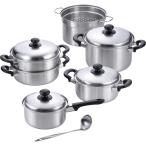 和平フレイズ 燕三(えんぞう)【IH対応】片手鍋18cm&両手鍋20cm&パスタポット22cm&二段蒸し器24cm&お玉付 [調理器具 なべ ステンレス] EM-025