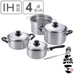 鍋&お玉4点セット 片手鍋18cm&両手鍋20cm&パスタポット22cm お玉付き IH対応 燕三 日本製 ( ガス火対応 両手鍋 片手鍋 パスタ鍋 レードル付き 燕三条 )