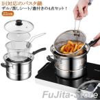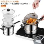 4点セット 両手鍋 深型 IH 18cm 22cm ザル付 万能鍋 IH対応 ガス火 IH パスタポット ガス 直火対応 そうめん鍋 ガラス蓋 パスタ